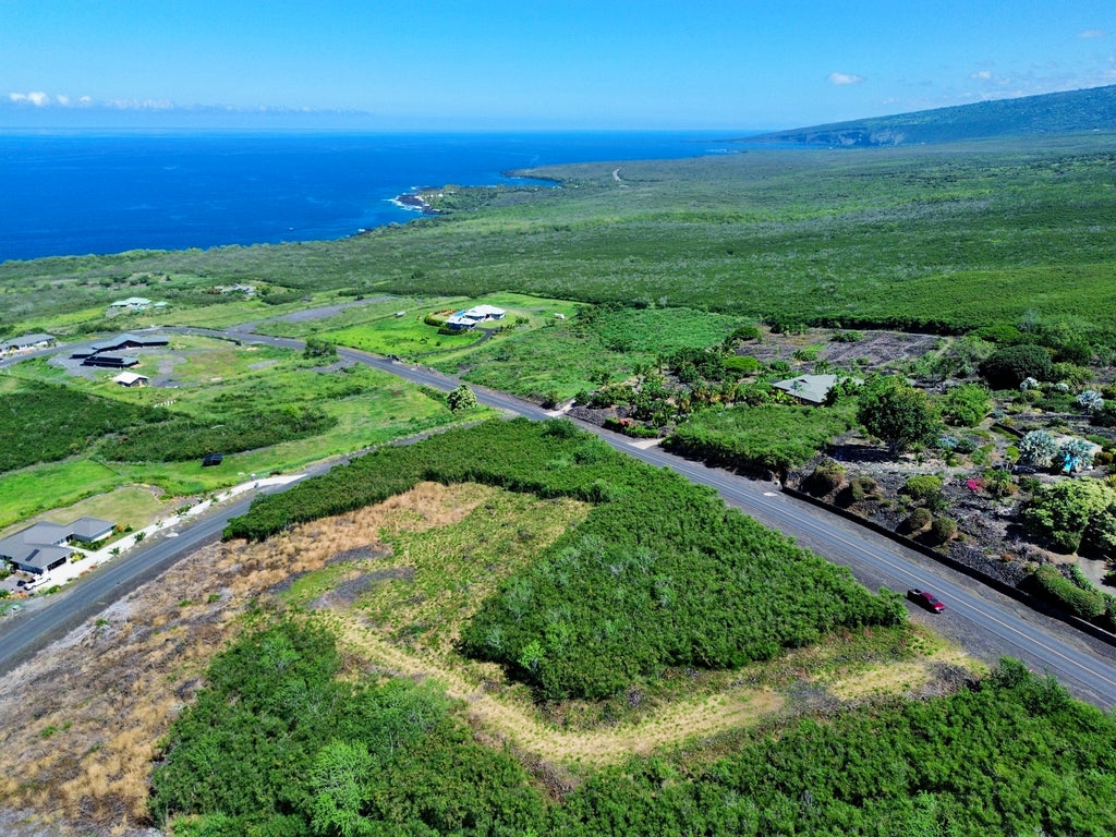 This exceptional five-acre lot in the gated Kiilae Farms subdivision offers breathtaking, unobstructed ocean views and an ideal topography. A natural bench on the upper half of the property gently slopes toward the ocean, creating a perfect home site with sweeping vistas. A driveway leads to a leveled clearing, providing a space to experience the view and privacy offered by this incredible property. The lot also features striking black rock formations, ideal for rock walls and unique landscape elements.