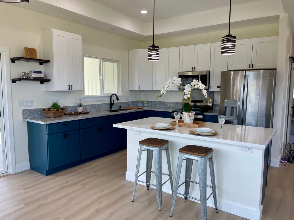 Don't miss this rare opportunity to own a brand-new modified HPM home in Waiakea just 3 miles from Hilo's shops, restaurants, and local attractions. Enjoy refreshing ocean and mountain breezes, nearby surf spots and year-round river access in this peaceful island countryside setting. Thoughtfully designed to complement its surroundings, this elegant home sits on a concrete foundation and comes complete with modern features and island inspired charm. The open lanai provides this home with a fantastic feel with the added benefit of enjoying cool mountain breezes. Set up some tables and invite the gang. Or just enjoy a peaceful quiet dinner looking at the slopes of Mauna Kea. The total square footage of 2371 sq ft. makes this a fantastic deal at $341 per square feet for a new home. Talk about Hawaii living at its finest. The interior of the home is full of charm. Enjoy a large island (that could fit four or more stools), granite countertops, GE stainless steel appliances, GE front loading washer and dryer, and open-concept dining and living at its finest. Enjoy 2 guest bedrooms, a large guest bathroom, floor to ceiling porcelain tile showers, and a prominent Owner's suite with a spacious walk- Water from the Gutters is diverted to flow off the property using underground PVC piping. The property is landscaped to fit your outdoor needs. Take a look at the video and see for yourself how special a home Please remove your shoes when entering the home. All realtors must perform their due diligence to confirm that all information therein is accurate and that all setbacks and county codes follow the laws.