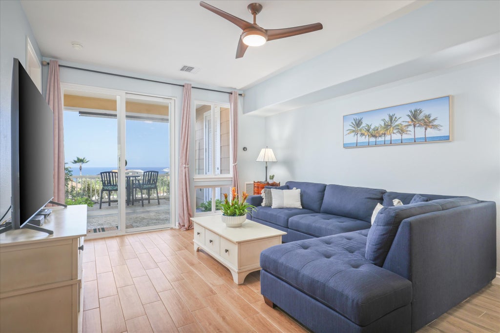 Discover unparalleled coastal living in this exquisite 2-bedroom, 2-bathroom ground-floor condo in the heart of Kona, Hawaii. Spanning 981 sq. ft., this meticulously designed residence offers seamless luxury and accessibility with no stairs, making it ideal for all lifestyles.