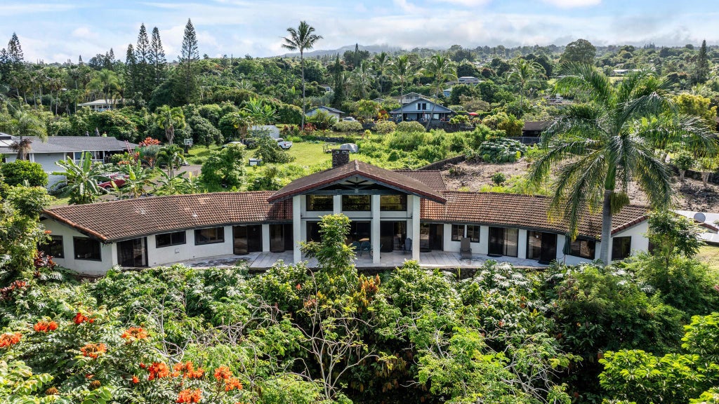 Architecturally stunning design in Kona Heavens! This home is calling upon a new owner to restore it to its former glory. As you walk through the front door, you're greeted by a grand lava rock fireplace met with soaring open beam ceilings. This single level residence has four bedrooms, each with its own entry to the lanai, three full baths and one convenient half bath along side the lava rock wet bar. The 4th bedroom and bathroom on the north end, with separate entrance, could serve as a separate unit or a comfortable office. Once the next owner trims the trees in front of the home, you'll enjoy a beautiful ocean view too.