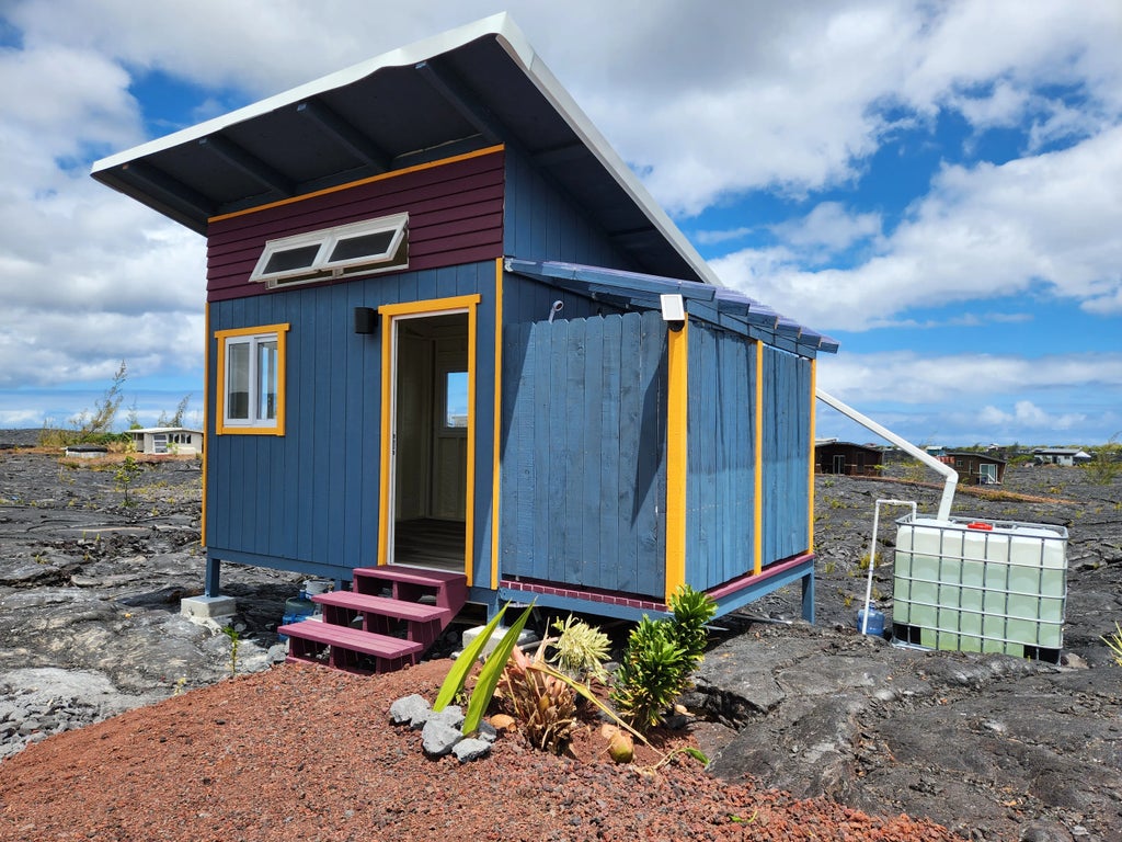 Excellent location in the subdivision and just a short drive off of paved Chain of Craters Rd in beautiful Kalapana Vacation Lots, formerly known as Kalapana Gardens. Endless unobstructed views of the pali and even witness nightime glows when the eruption in Halemaumau is active. Enjoy the cool comfort of the small off-grid cabin as your home base. It comes with a solar system to run your water pump, lights, electronics, small fridge and is run by an inverter that can even act as a battery if you need added power to run your tools. Plenty of leveled space is left on the lot to build a larger cabin. The septic system is installed and the lot is already partially landscaped. Add your finishing touches with your favorite tropical plants!