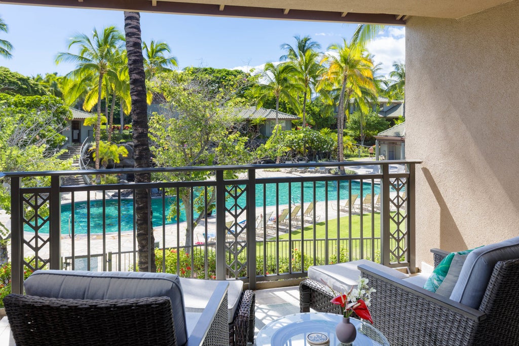Experience the finest Big Island lifestyle within one of the Gold Coast’s most desirable resort communities. This 2 bed, 2.5 bath Fairways at Mauna Lani townhome has been refreshed for new and younger appeal with clean lined modern furnishings, curated artwork, and chic design touches — creating a elevated and stylish retreat. As an active Short-Term Vacation Rental (STVR), we invite you to step effortlessly into the Mauna Lani lifestyle while benefiting from established rental income. One of the best locations within the community, Fairways 2003 is a corner villa positioned just steps from the pool, spa, and fitness center—ideal for those looking to relax, recharge, or entertain poolside. Filled with bikes, boards and coolers, the private garage is equipped for days of sand, surf, and sun. Mauna Lani Resort offers a lifestyle that is unmatched. Ride your bike to the private Mauna Lani Beach Club, tee off on two championship golf courses, explore nearby shops and dining, or spend the day one of the island’s most pristine beaches. Whether used as a primary residence or an exclusive resort escape, this Fairways townhome captures the essence of Big Island luxury and convenience.