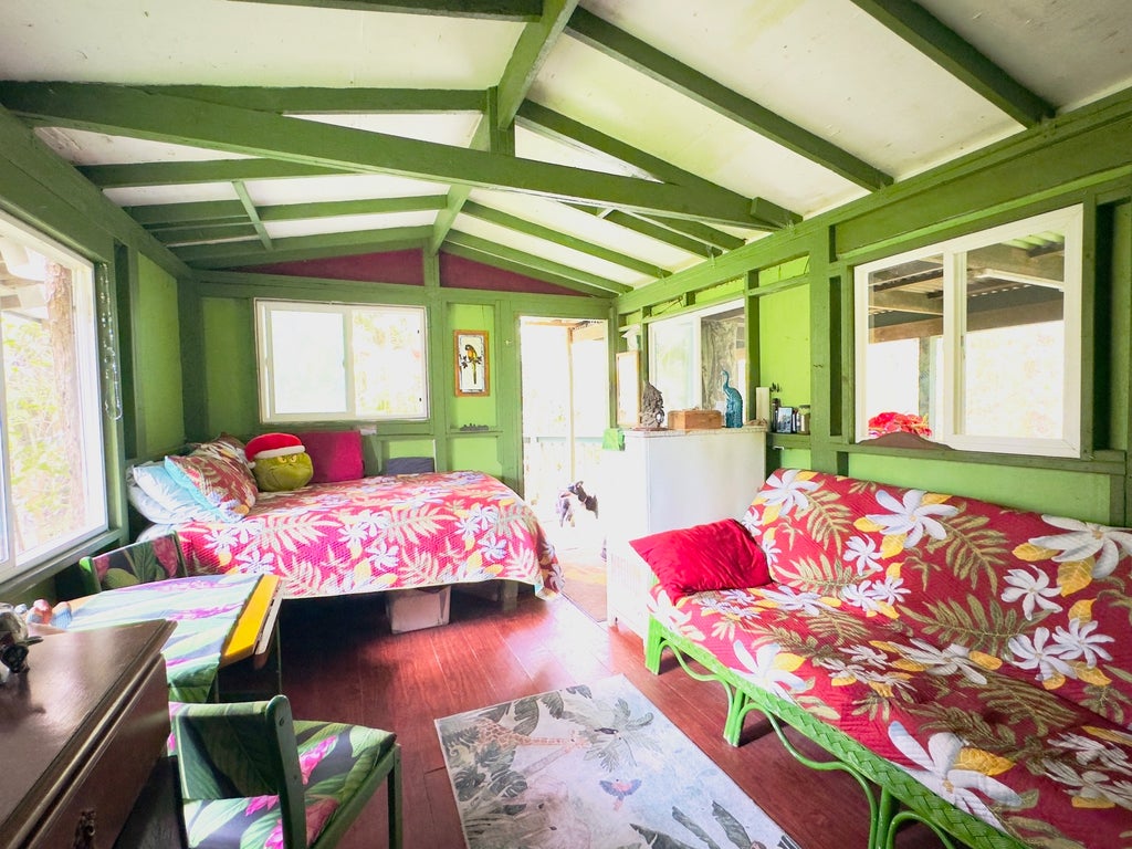 Tucked away from all the hustle and bustle, this cabin in the trees provides the perfect retreat for off-grid living, or a great head start to build you Hawaii dream home. Located near the end of dead end Pulelehua Road(RD 11), accessed by recently improved D Road, your drive to and from the highway is as smooth as it gets. This lush parcel has been hand cleared to leave the natural jungle beauty intact, and includes a storage shed, covered dog pen, outhouse/storage structure, and an enclosed area for the solar setup. Don't miss out on this opportunity to own your piece of paradise.