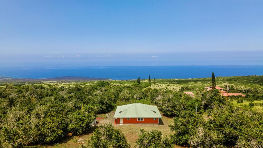 Brand new construction on 8.64 acres of income producing Macadamia nuts! This turn-key furnished home was just completed this year and features beautiful ocean views all on a single level. The home features an open concept design, granite counters, laminate flooring, a heat pump efficient water heater, and an oversized master bedroom with ensuite bath and walk in closet. Located at approximately 1,700ft above sea level, you'll never find the need for AC. The entire 8.64 acres is fenced and gated. With a full price offer, the sellers are willing to include a car.