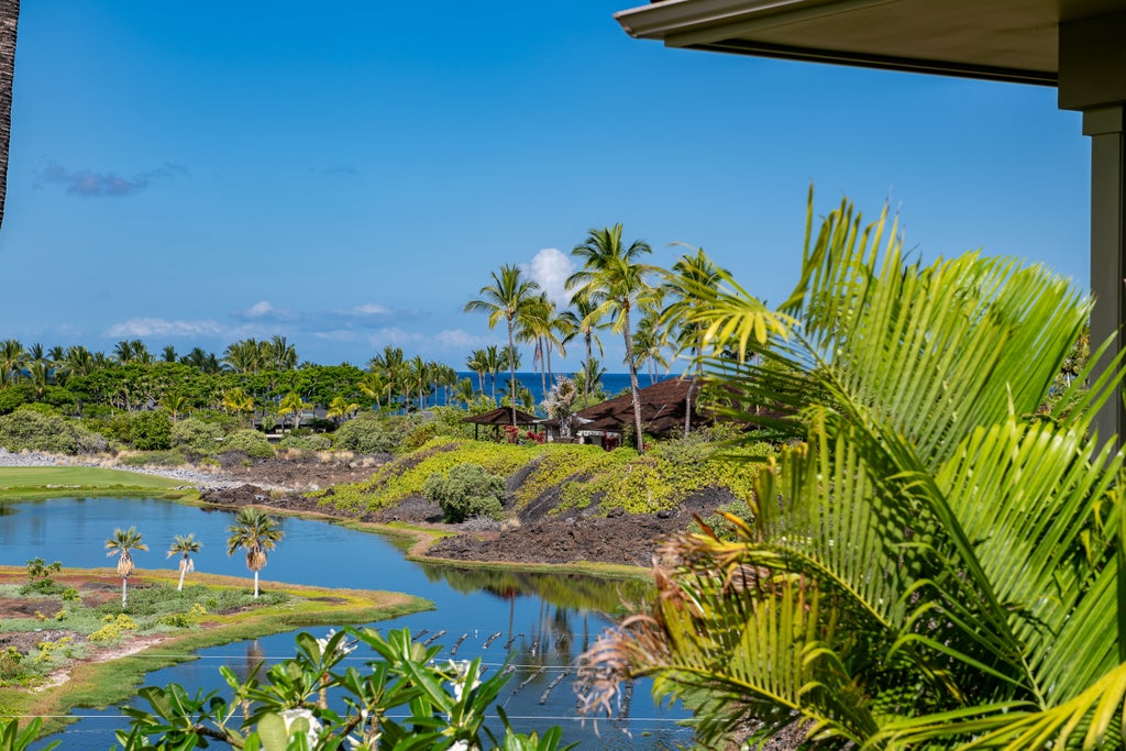 Enjoy panoramic Hualalai Mountain, ocean, and Ke‘olu Golf Course views from this premium top-floor villa. With 3 bedrooms and 3.5 bathrooms across 2,640 square feet, this well-appointed residence offers comfort, style, and the best of island living. The villa enjoys a secluded location at the end of the complex, offering the closest proximity to the ocean.