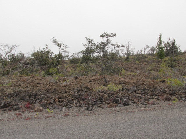 This a unique oversized acre with possible views. 95 foot road frontage. Landscape is natural with lots of a'a and pahoehoe lava which can be dozed to create a perfect homestead. Some smaller trees for greenery and minimal privacy. Higher elevation in the back of lot should have some coastline views. 4600 foot elevation with no power lines to block your views. 133 feet along the back along park fencing. Very little traffic in this area. Come see what the night sky looks like - AWESOME! Ocean View is still very affordable and has amenities such as groceries, Ace, auto, gift shop, pizzeria and Kai Loki's. Come enjoy "The View"!