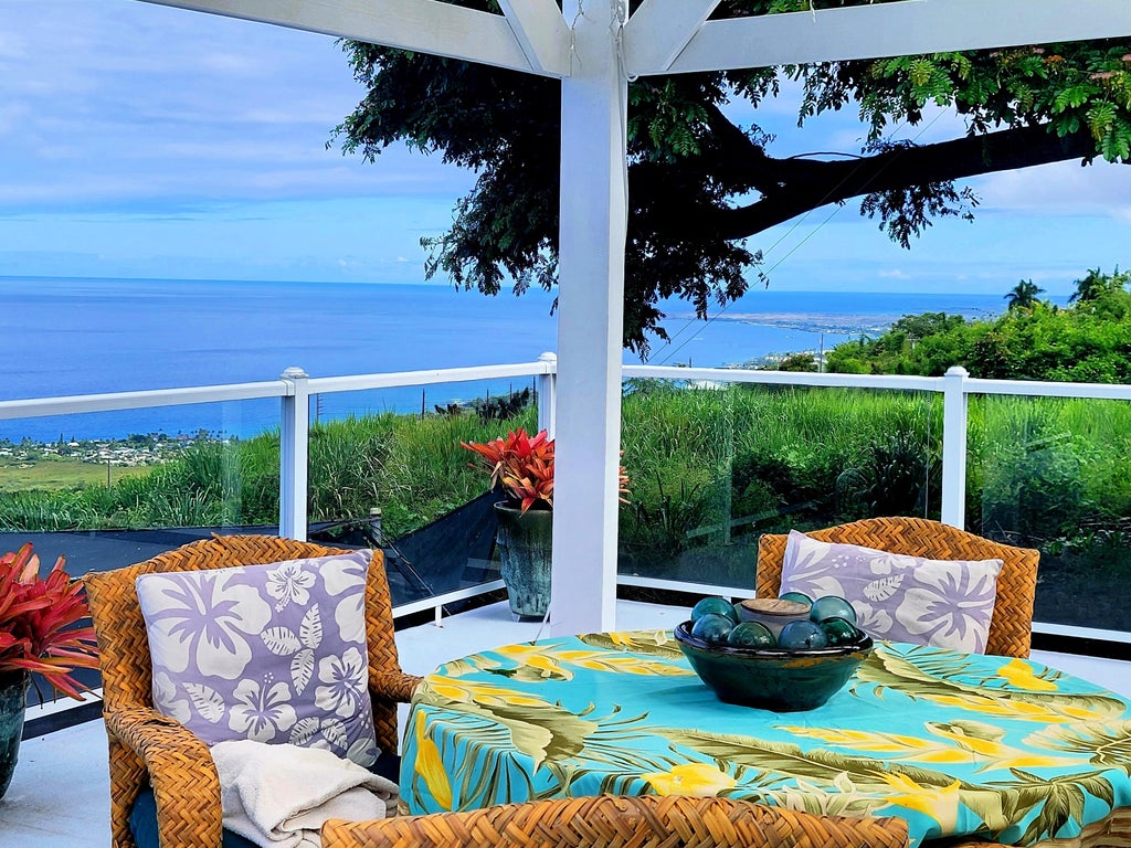 Outstanding Ocean and Coastline views from this spacious and comfortable Country Home. Three Bedroom/ Two Bath with 1,766 sq ft of interior space with approximately 464 sq ft additional enclosed lanai. Home opens onto a 1,920 sq ft open deck with Gazebo for Alfresco dining.