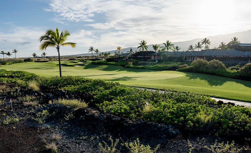 Lot 48 offers golf course frontage along the Rees Jones-designed course. It provides sunrise views of Hualālai and Mauna Loa on clear Kona mornings. This homesite was ideal for building a custom residence in a private setting.