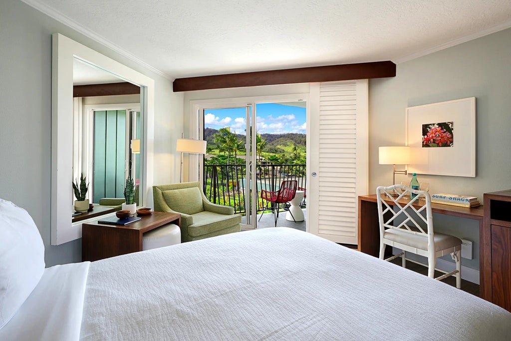 Fully renovated in 2023 and turnkey. Located on the fourth floor facing Mauka (mountains). The lanai is an ideal location for relaxation and to enjoy the lush green mountains and its tropical scenic views while sipping your favorite coffee in the morning. It’s comfortable, fully air conditioned with two beds that can accommodate up to 4 people. A dedicated workspace for your laptop. The fourth-floor lobby provides seating area to view the pool and ocean. Kauai Beach Resort is centrally located and situated right on the beach and on acres of well-manicured gardens. Amenities include an on-site dining, fitness center, waterfalls, and slides, 24-hour front desk service, a spa, and many more. This is in a Vacation Destination Area (VDA), a full-service oceanfront resort that is perfect for short term rentals or a place for you to escape and rejuvenate. New features include: New flooring with luxury vinyl New vanity countertop New vanity light fixtures New furniture o Headboards/mattresses o New Desk with chair o New dresser console o New nightstand and lamps o New full-length mirror. o New floor lamp o New arm lounge chair, ottoman and waterfall table artwork & accessories New painting in the room and bathroom